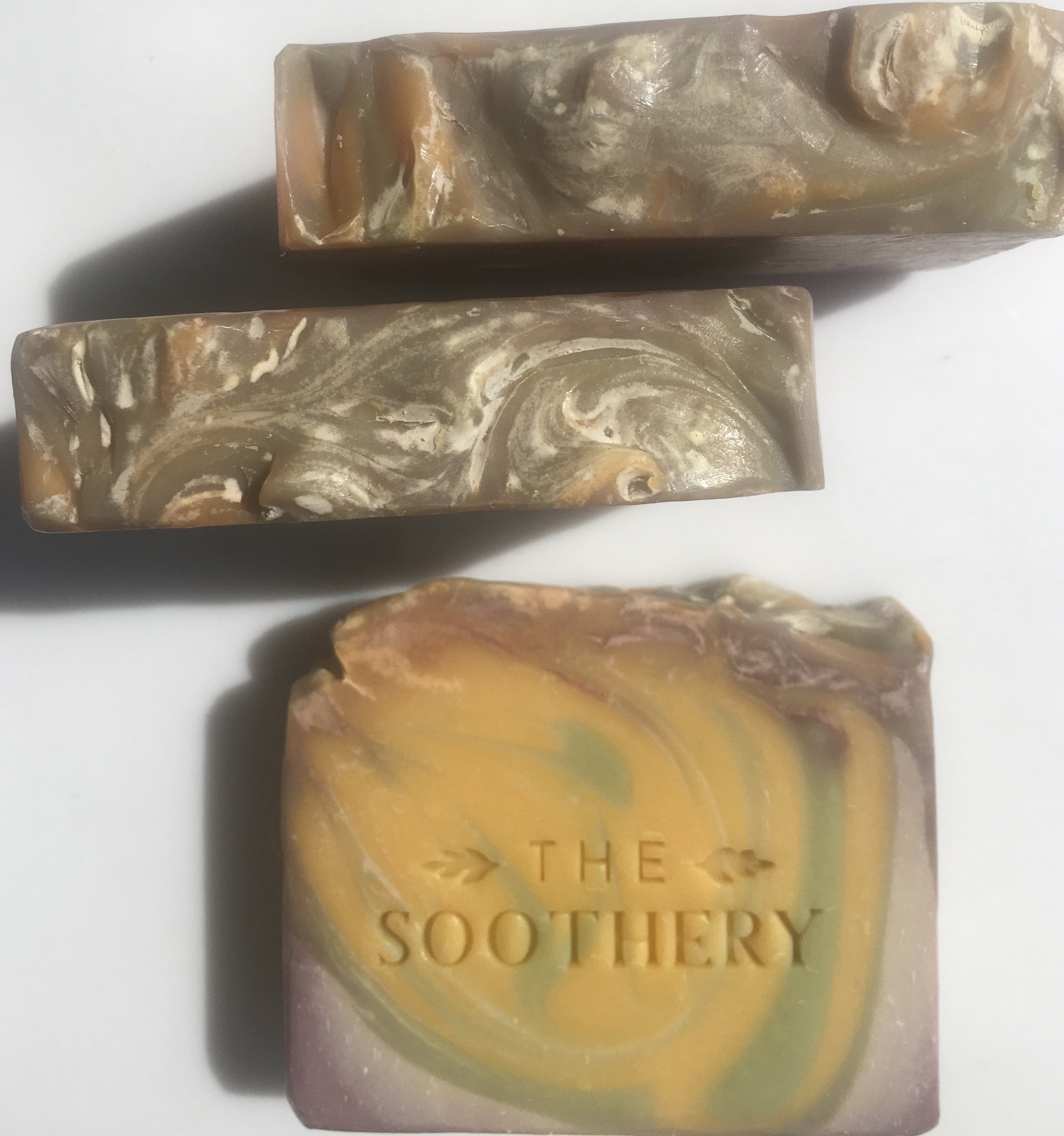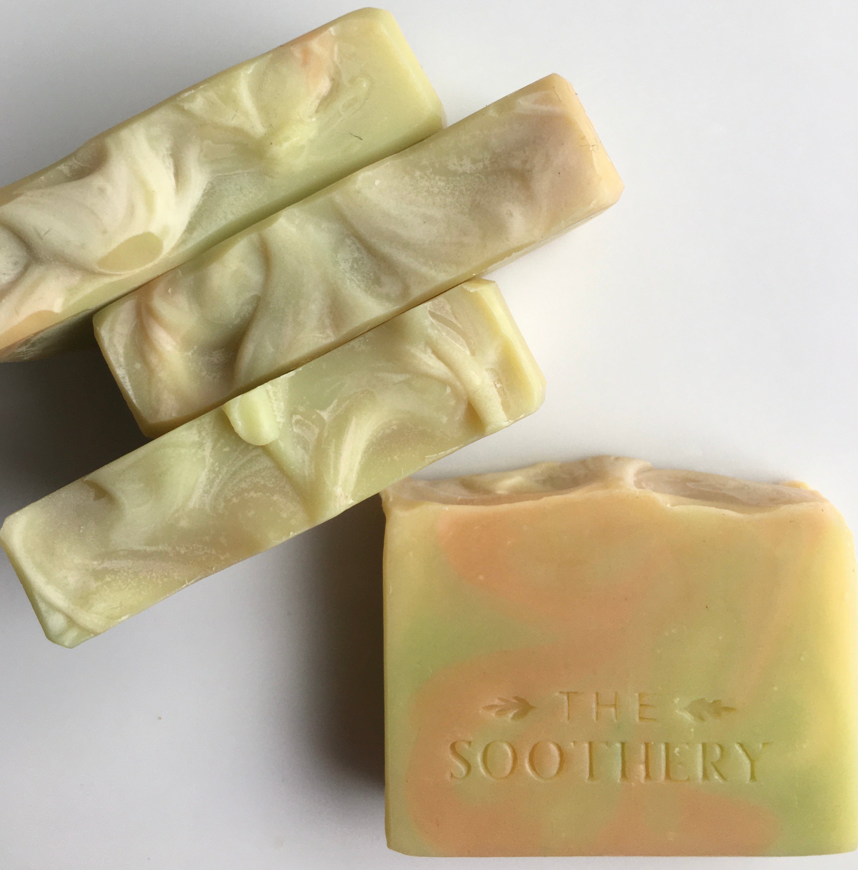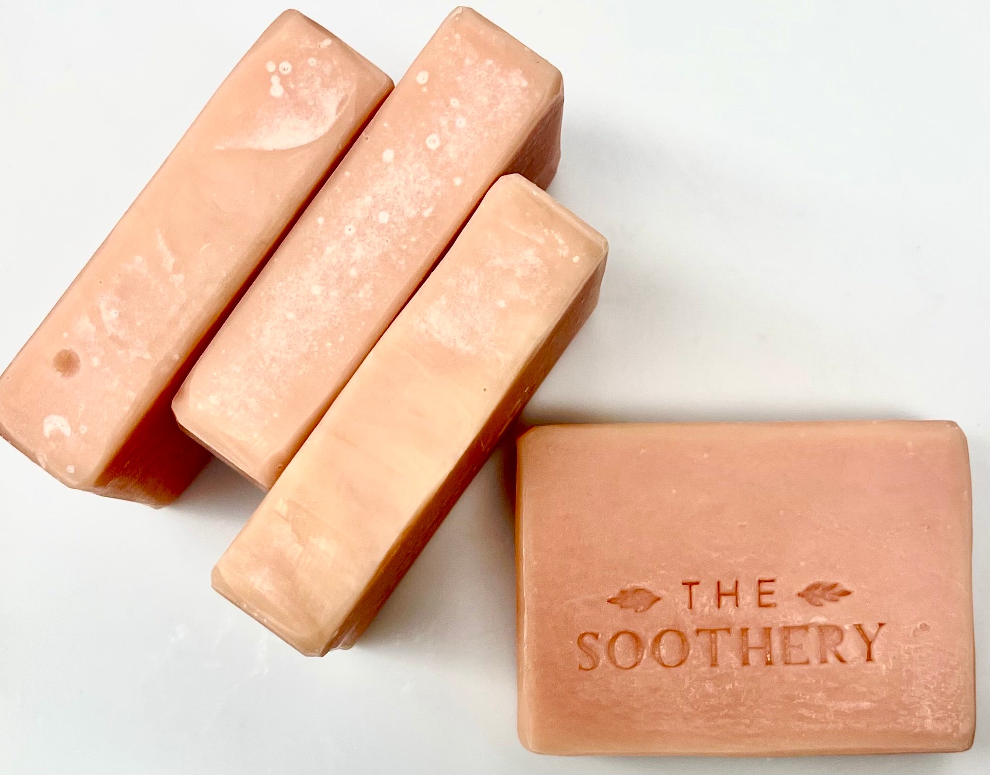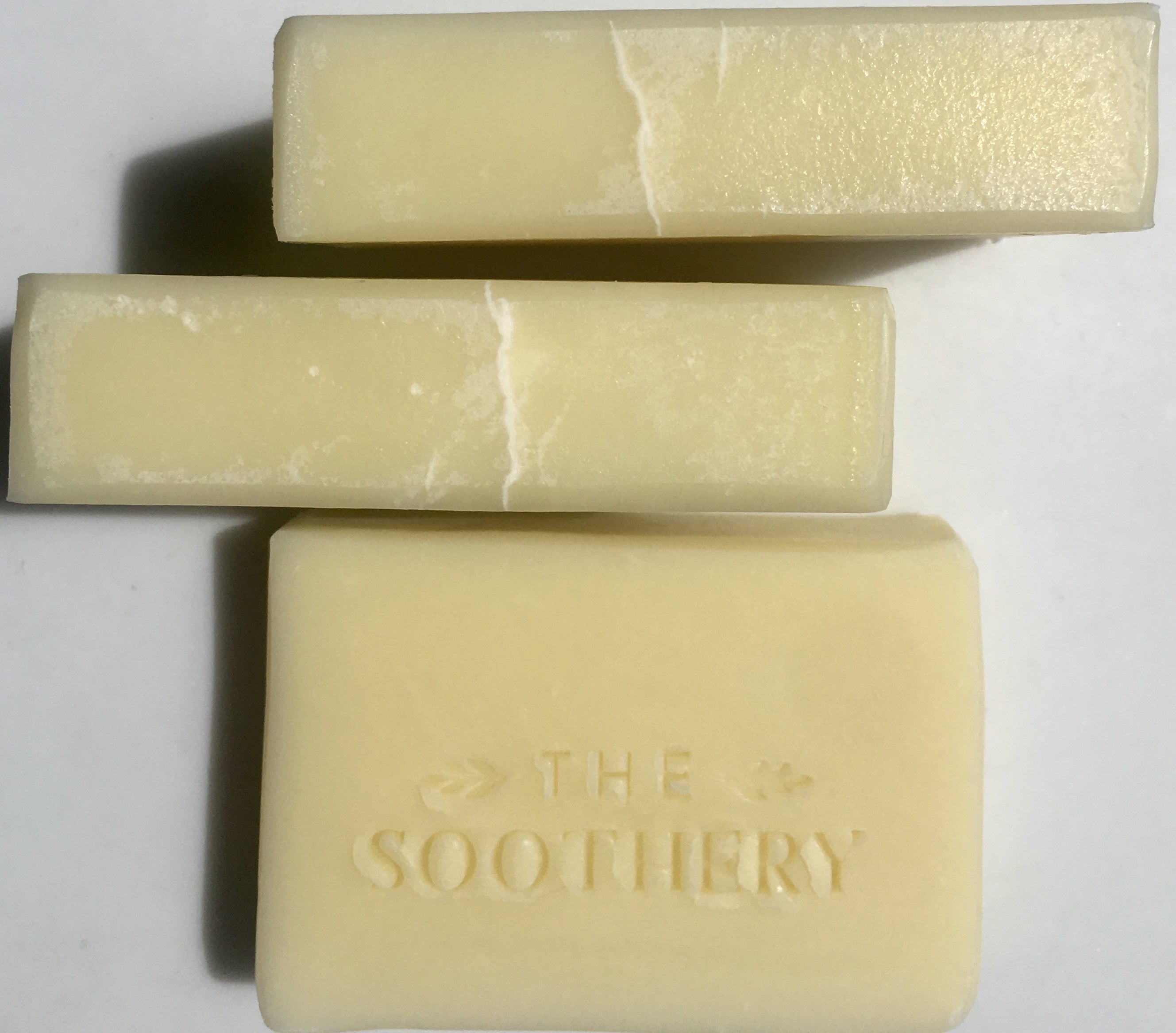 The Soothery Soaps are a handmade, small batch product and each Soap Bar has slight variations in color and design. Every Soap Bar is very high quality, long-lasting, and large: 5.3-5.5 ounces in weight and approximately 3 3/4" wide by 2 3/4" high. Soaps in the Pure Solace line are approximately 3" wide and 3 1/4" high.