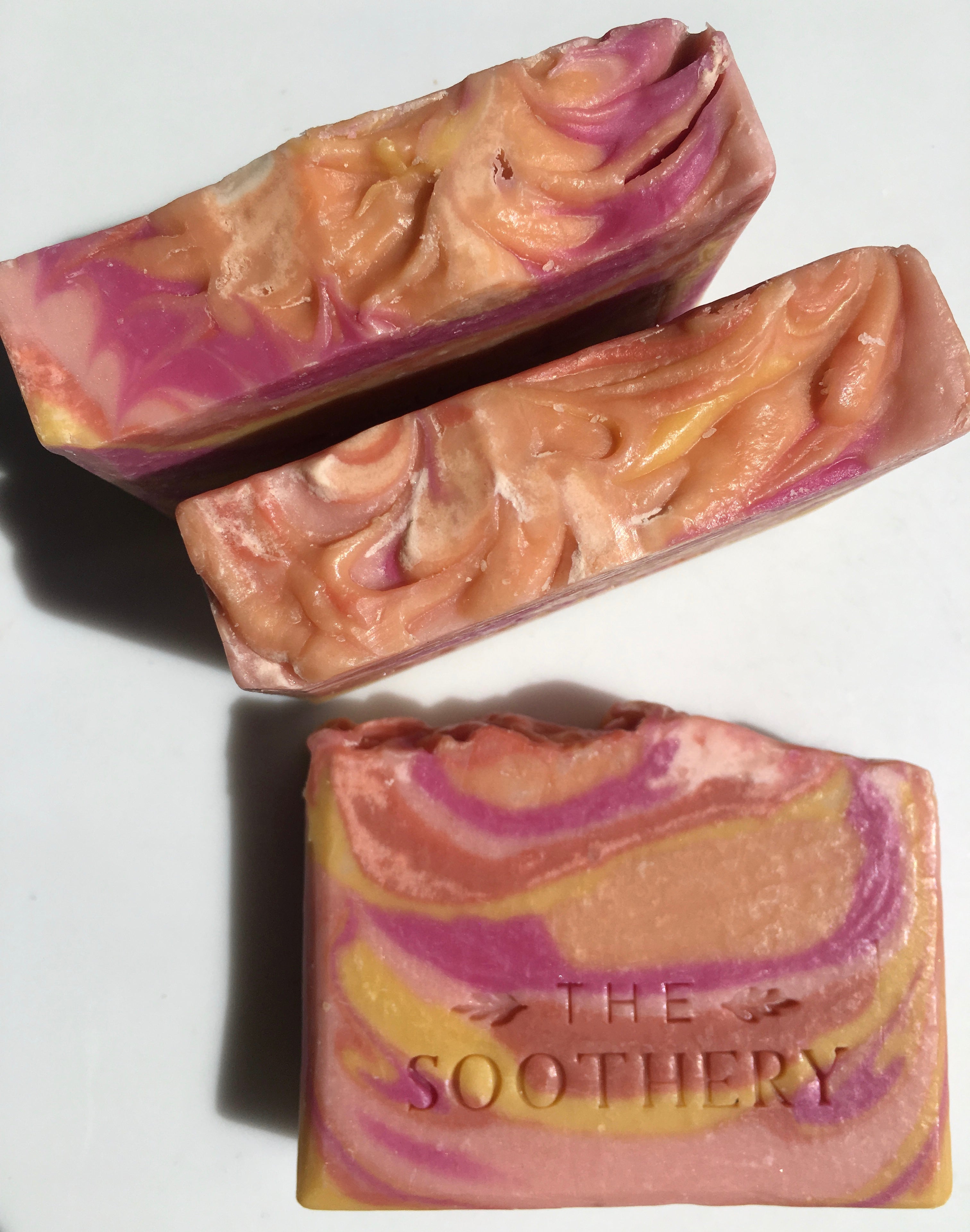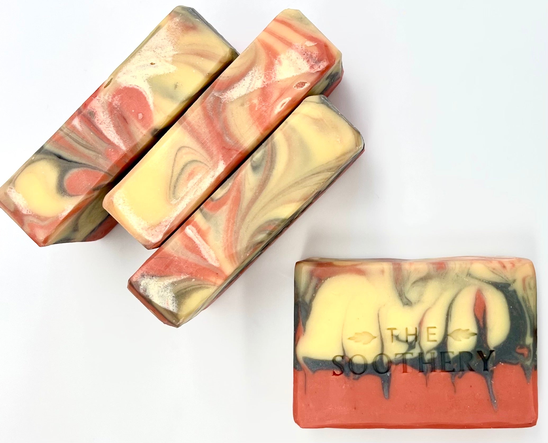 Ingredients: Olive Oil, Coconut Oil, Shea Butter, Palm Oil, Palm Kernel Flakes, Lye, Fragrance Oil, Avocado Oil, Castor Oil, Mica and other powders-see specific bars for exact ingredients.