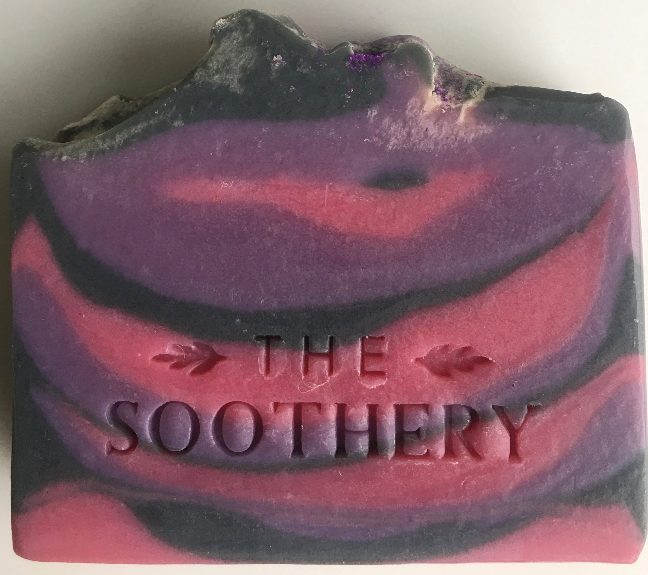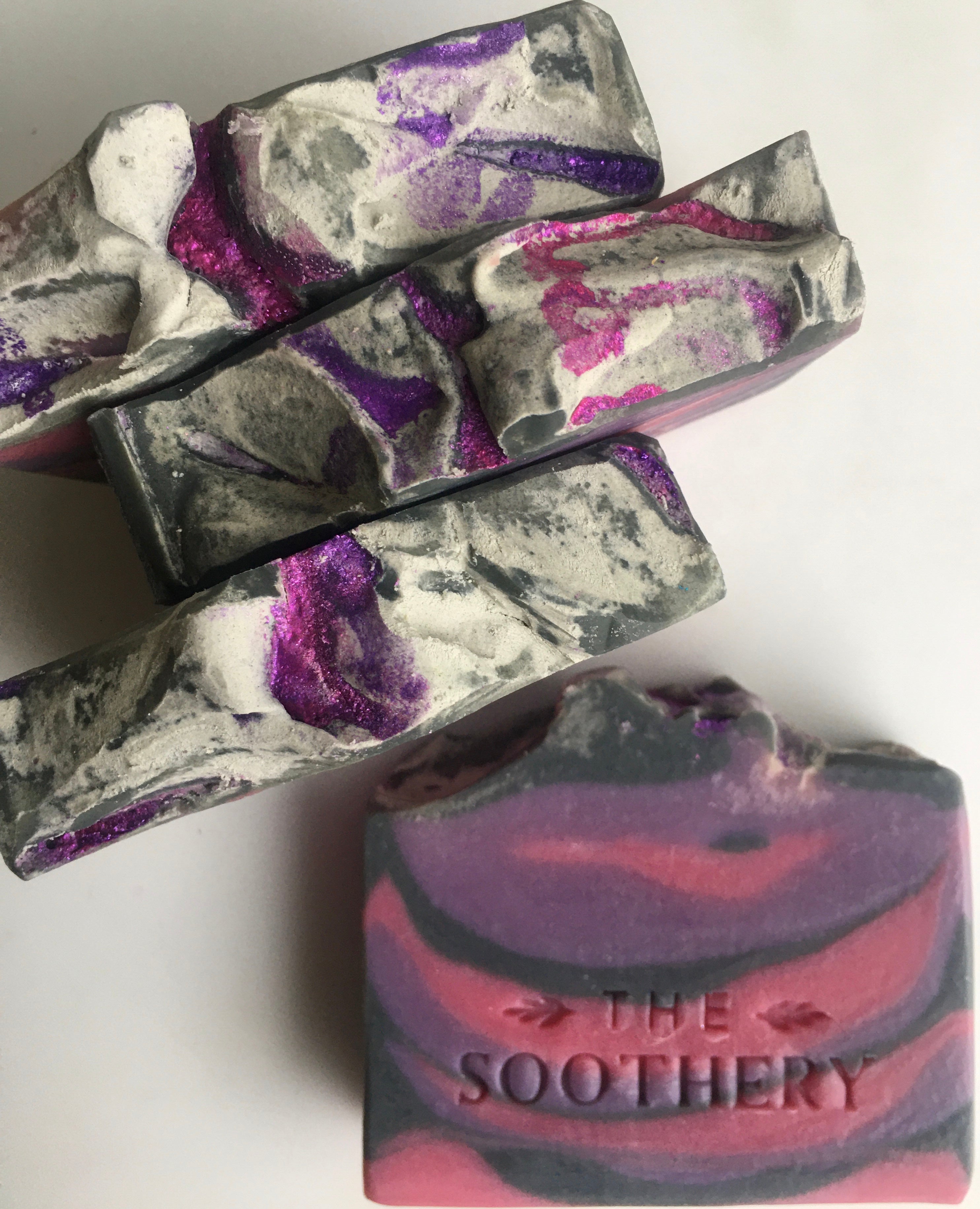 Ingredients: Olive Oil, Coconut Oil, Shea Butter, Palm Oil, Palm Kernel Flakes, Lye, Fragrance Oil, Avocado Oil, Castor Oil, Mica (Mica, Titanium Dioxide, Iron Oxide, Manganese Purple, Tin Oxide, Fluorphlogopite), Charcoal Powder