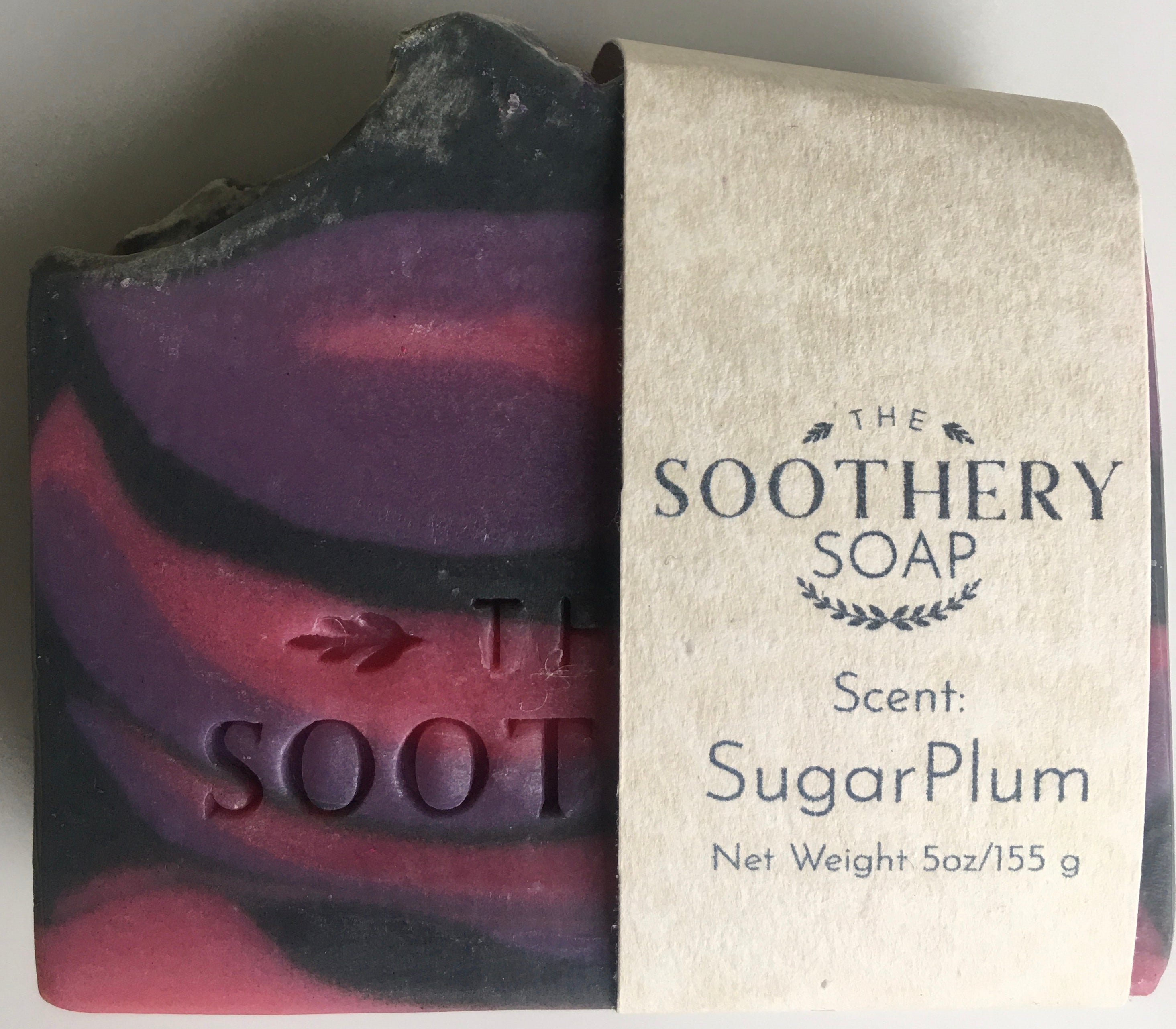 This sweet and lively Soap Bar is a Holiday treat! Sugared, fresh plum and winter orchid with a hint of sandalwood is the scent of Sugar Plum. Colorful with pink & purple sparkles on the top, Sugar Plum is festive and fun.