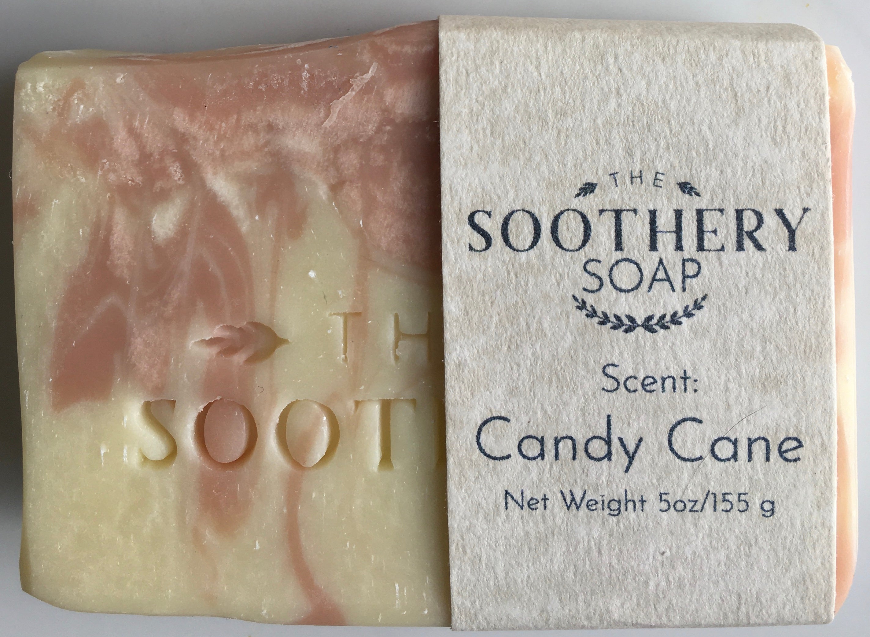 This Candy Cane Soap Bar is scented with Essential Oils: Peppermint, Spearmint, & Tea Tree in a combination that produces an exact Candy Cane scent! A minty, sweet scent, this seasonal Candy Cane soap bar is fresh, clean, and festive, as well as all-natural.