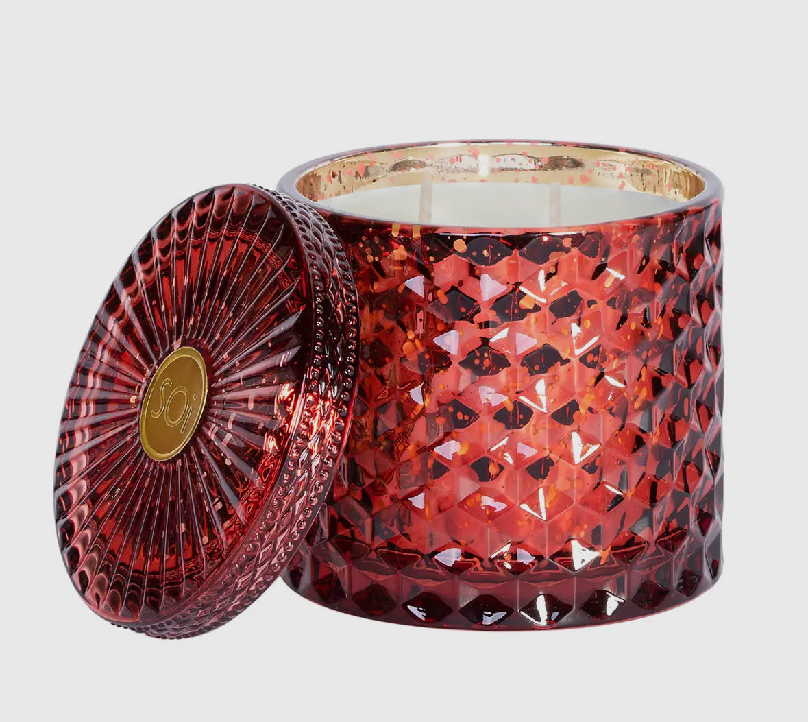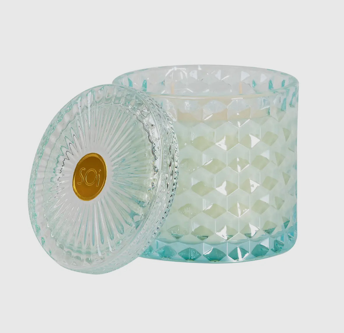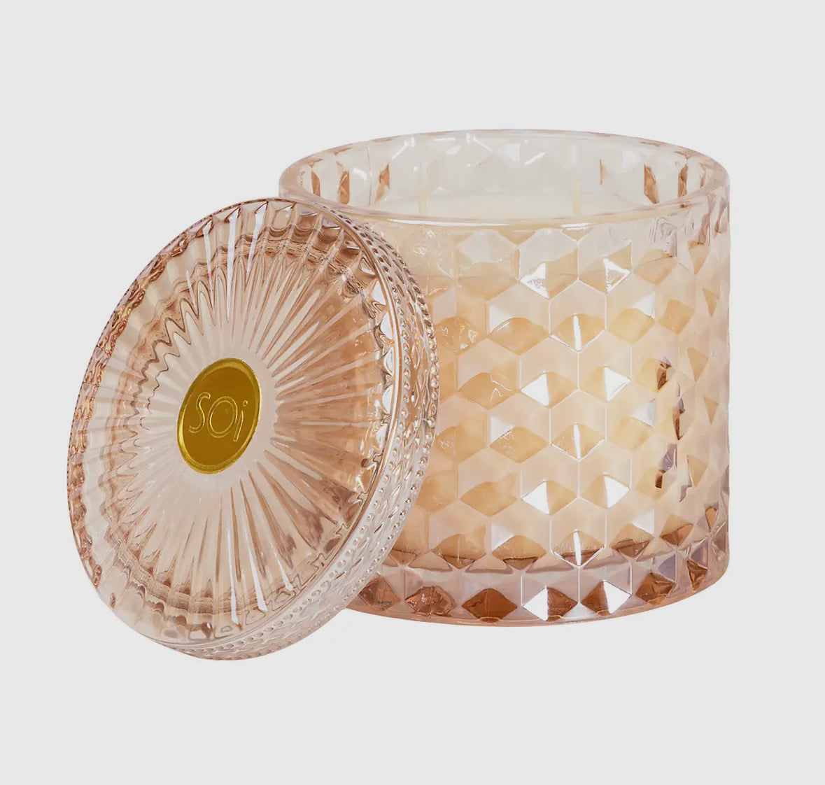 These 15oz soy-blend, cotton wicked candles come in a beautiful, shimmering, diamond-cut glass lidded jar. Poured by hand, each scent is luxurious and divine, and adds a special ambiance to any room. The jars are 4x4x4 and they have a 55 hour burn time. The beautiful glass vessel can be used as a keepsake when the candle is finished. See below for scent descriptions: